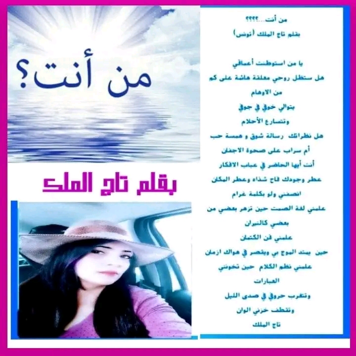من أنت…؟؟؟؟بقلم تاج الملك (تونس) يا من استوطنت أعماقيهل ستظل روحي معلقة هائمة على كم من الأوهاميتوالي خوفي في جوفيوتتسارع الأحلامهل نظراتك رسالة شوق و همسة حبأم سراب على صحوة الاجفانأنت أيها الحاضر في عباب الافكارعطر وجودك فاح شذاه وعطر المكانانصفني ولو بكلمة غرامعلمني لغة الصمت حين تزهر بعضي من بعضي كالنيرانعلمني فن الكتمانحين يمتد … تابع قراءة من أنت؟؟؟؟ للشاعرة تاج الملك أميرة الحروف //تونس